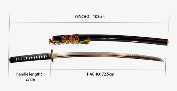 X.ZENCHO The total length of the katana,including the stem (the blade length is only the blade body).